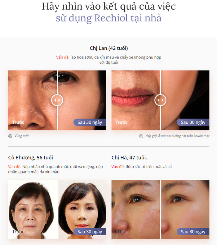 - Kết quả đã được chứng minh: nếp nhăn giảm trong 100% trường hợp Rechiol;