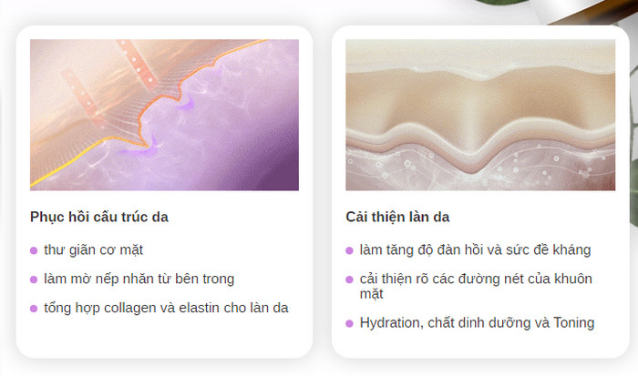 - Làm mờ nếp nhăn, sẹo, làm cho các lớp trên của lớp hạ bì đàn hồi và đàn hồi,