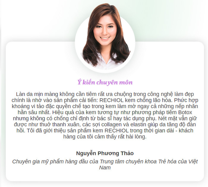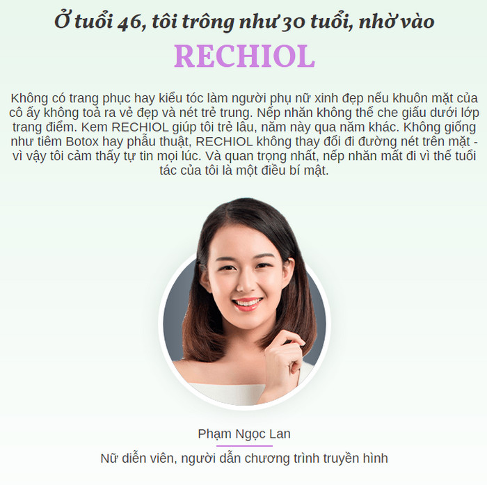 Làm thế nào để loại bỏ hoàn toàn nếp nhăn trong 1 tháng mà không cần đầu tư vào các thẩm mỹ viện đắt tiền và không gây hại cho da? Làm thế nào để không chỉ xóa nếp nhăn một cách trực quan, mà còn mãi mãi và hoàn toàn? Kem Rechiol có thể! Điều này được xác nhận bằng cách sử dụng trong nhận xét về của họ trên các diễn đàn. Mọi người ai đã dùng kem Rechiol coi Rechiol đơn giản là một phép màu của sự biến đổi.